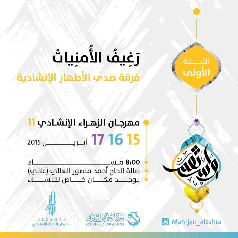 يذكر أن مهرجان الزهراء الإنشادي الحادي عشر والذي يقيمه المركز التعليمي الثقافي بقرية عالي حمل عنوان: «واستقم»، في إشارة إلى التحذير من الانحلال الأخلاقي الذي تمر به المنطقة.