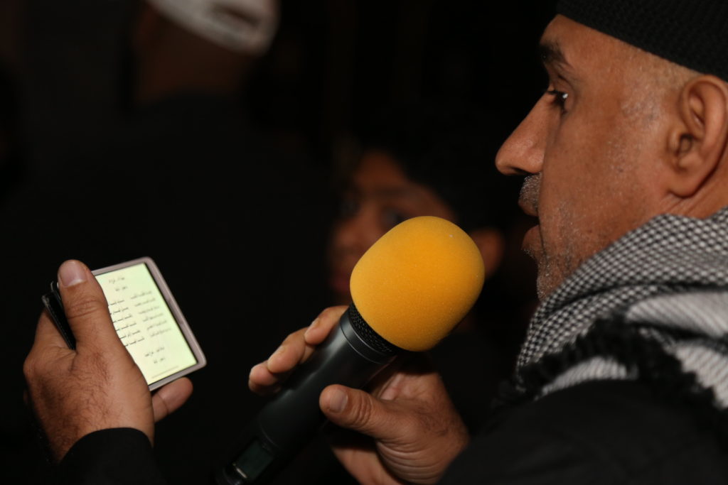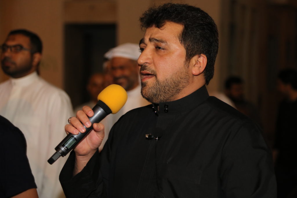 موكب العزاء انطلق بقيادة الرادود الحسيني رياض الشيخ الذي ألهب بقصيدته القلوب المحمدية، فيما كانت هناك وقفةٌ حسينيةٌ للرادود عيسى قمبر.