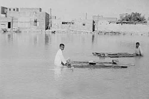 - والعنصر الثالث فهو الفعل الإنساني في مواجهة الحادثة ومشكلاتها المترتبة عنها، ونعني ما قام به بعض الأهالي الذين عاشوا تجربة الواقعة بأم أعينهم، ونقصد التصدي المباشر لواقعة تدفق المياه وسيوله الجارفة، ومحاولتهم بالإمكانيات المتواضعة وضع حلول سريعة للإبطاء من تدفق المياه، وتقليل أضرارها كوضع سواتر ترابية، ونقل بعض الممتلكات إلى أعلى السطوح، أو أماكن مرتفعة، ونقل الأطفال من مدارسهم إلى البيوت أو أماكن آمنة عن طريق السيارات الخاصة، وهي آنذاك قليلة ومحدودة، وحماية النساء والرضع، والأطفال الصغار دون سن المدرسة من قسوة الفيضان وسيوله الجارفة، وما ترتب عن ذلك من فعل الناس من تكاتف، وتعَاون، وتعاطف، واستبسال في حماية الممكن بخاصة حمَاية الأطفال والنساء.