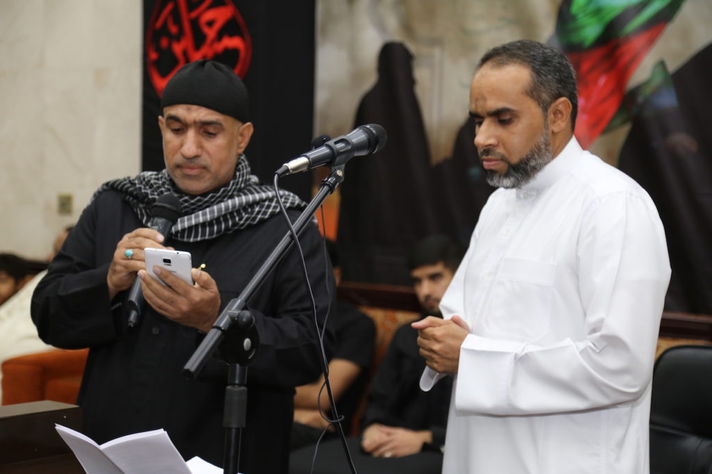 المراسيم التي امتدت قرابة الساعة والنصف، ضمت فقرةً إنشاديةً للرادودين الحسينيين حسن العجوز وحسن الهدي، تلاها فقرةٌ شعريةٌ للشاعر الأستاذ عبد المنعم الشايب بالمشاركة مع الرادود عيسى قمبر.