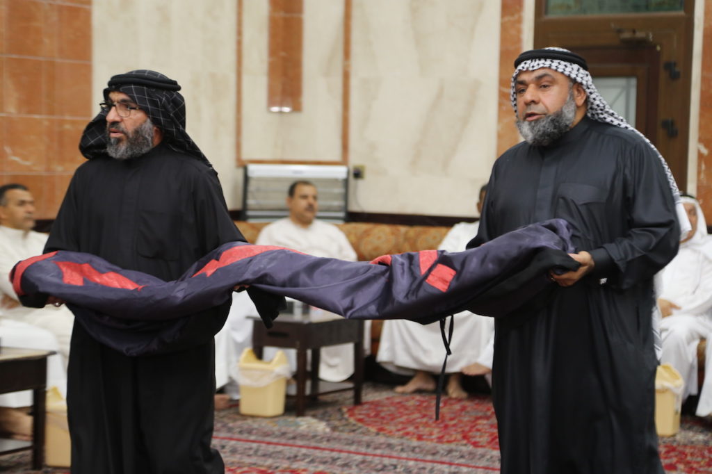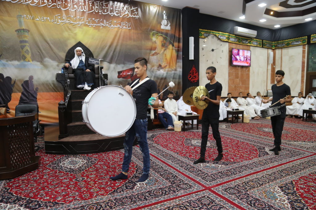 ليتولى بعدها الحاج جاسم ماجد والحاج محمد إبراهيم مسؤولية رفع الراية الحسينية بمشاركة لجنة الزنجيل التي استهلت المراسيم بقرع الطبول إيذاناً بدخول شهر الأحزان.