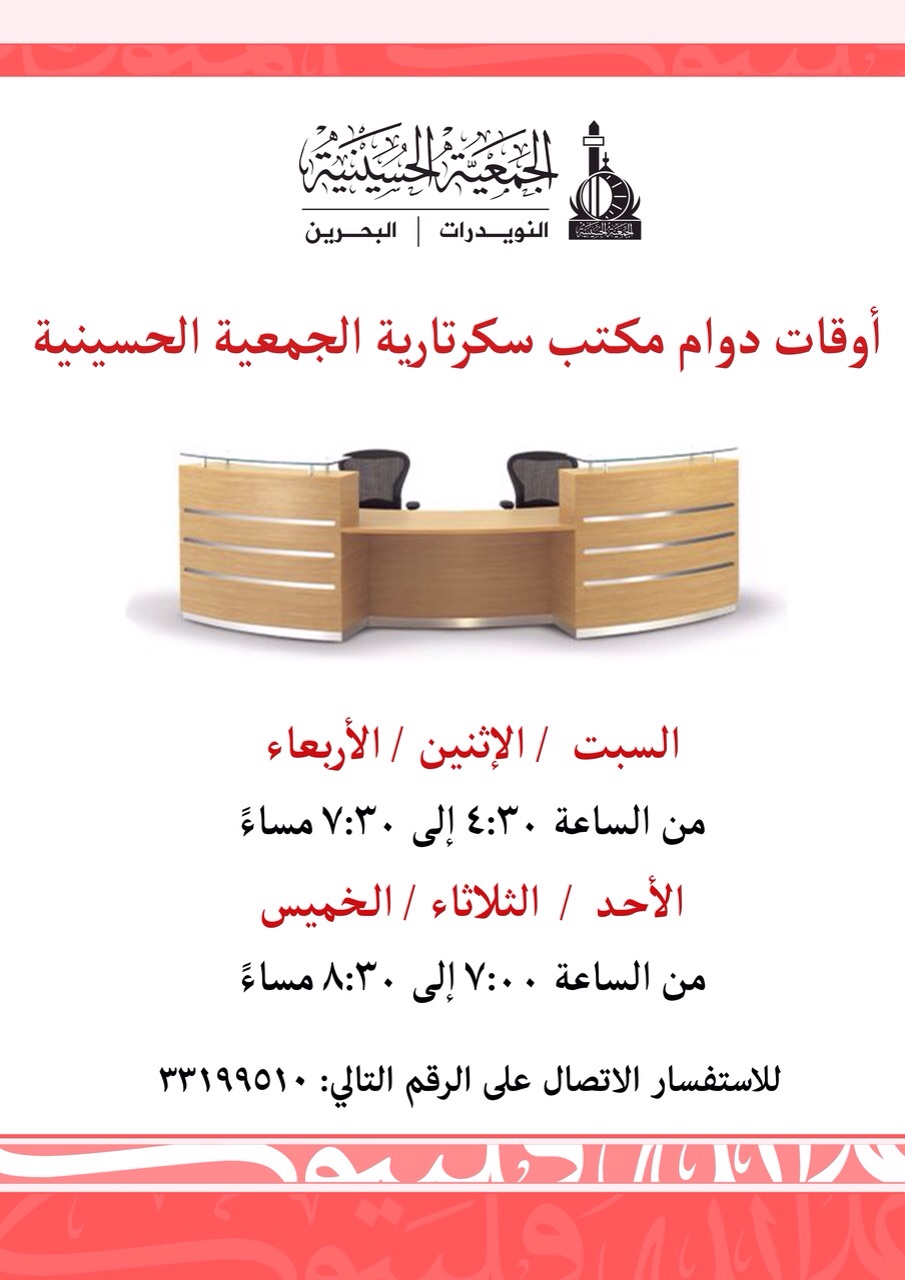 أوقات دوام مكتب سكرتارية الجمعية الحسينية