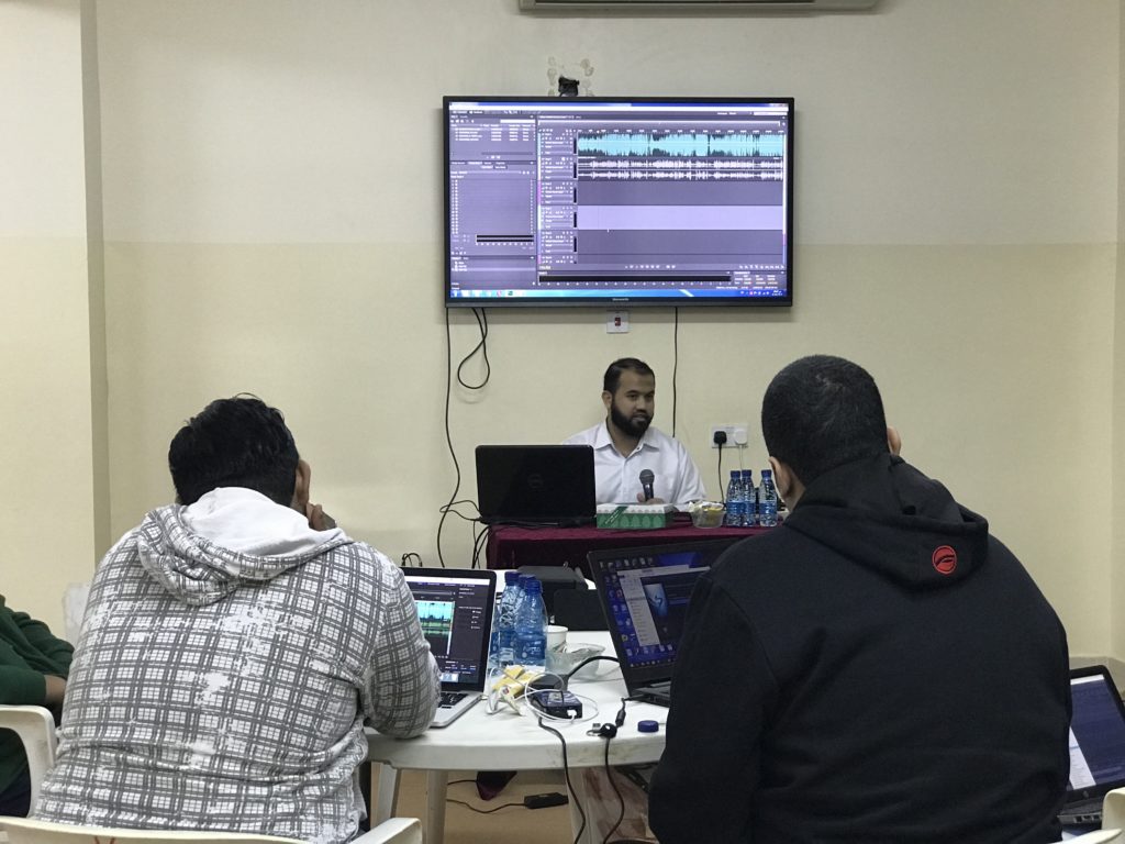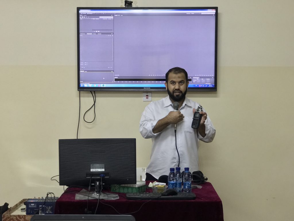 قدم الورشة الأستاذ “علي الحر”، وتناولت مجموعة من المواضيع أهمها التعرف على اساسيات التسجيل الصوتي لموكب العزاء والإستفادة من التجهيزات المتوفرة للحصول على تسجيل نقي يمكن التعامل معه في برنامج “Adobe Audition”، كما ركزت الورشة على طرق التعامل مع البرنامج واضافة المؤثرات على ملفات الصوت.