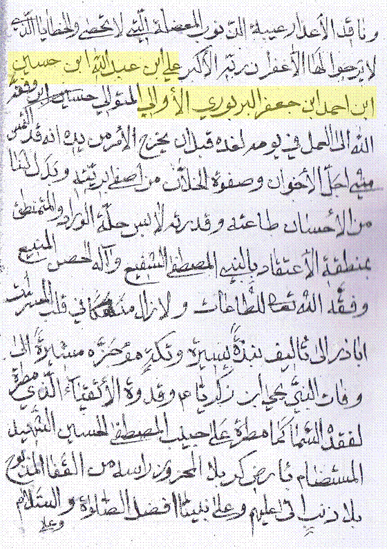 وثائق لمخطوطة الشيخ علي بن عبد الله البربوري الأوالي البحراني: