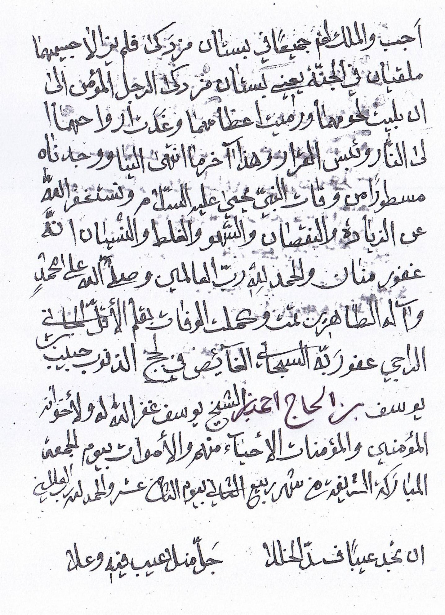 2. مخطوط لخمس رسائل ومصنفات لعلماء البحرین، نسخ وخط المرحوم الخطیب الحاج حبیب بن یوسف بن الحاج أحمد بن الشیخ یوسف بن الشیخ محمد بن شیخ عبد اﷲ النویدراتي البحراني.
