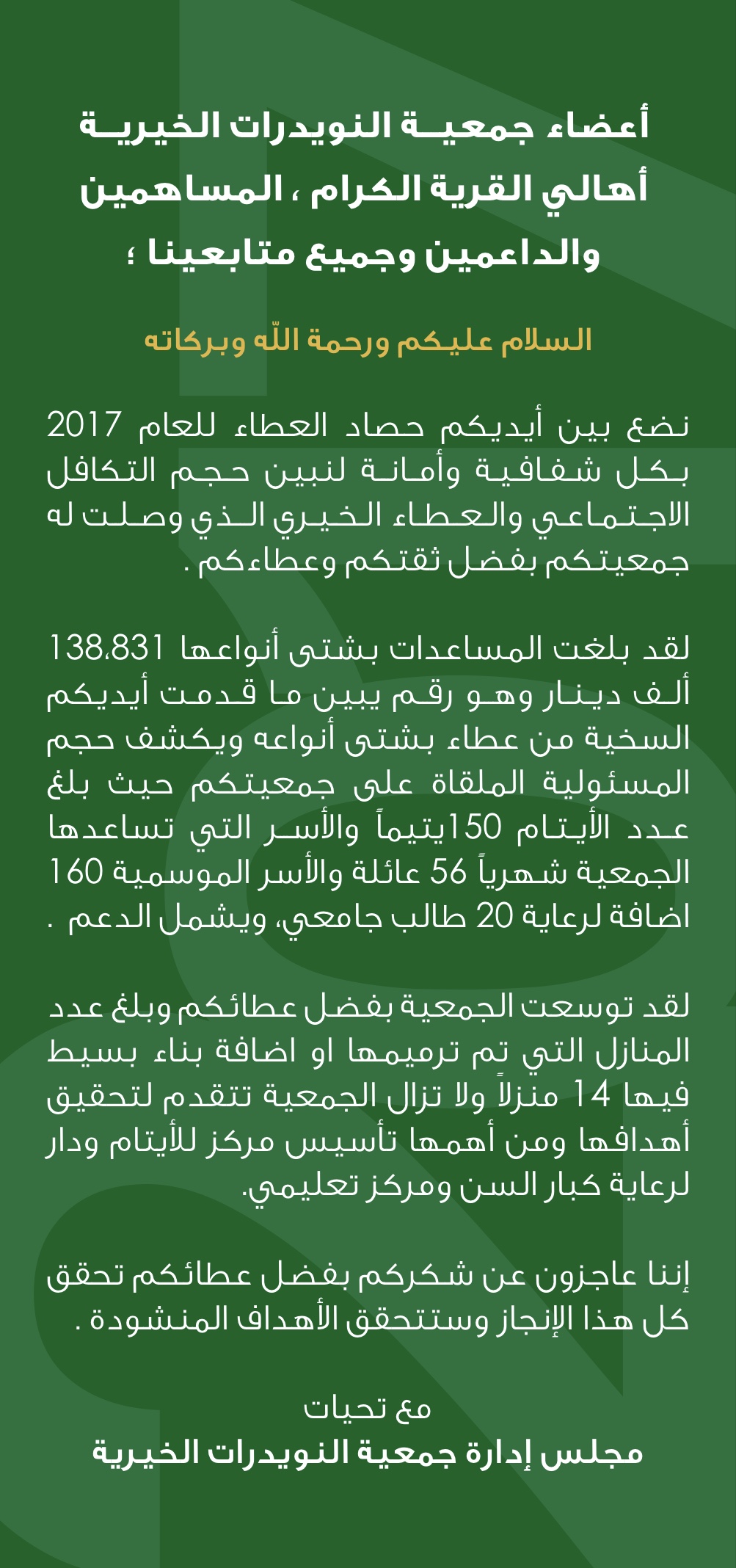 قيمة المساعدات التي قدمتها جمعية النويدرات الخيرية في عام ٢٠١٧م