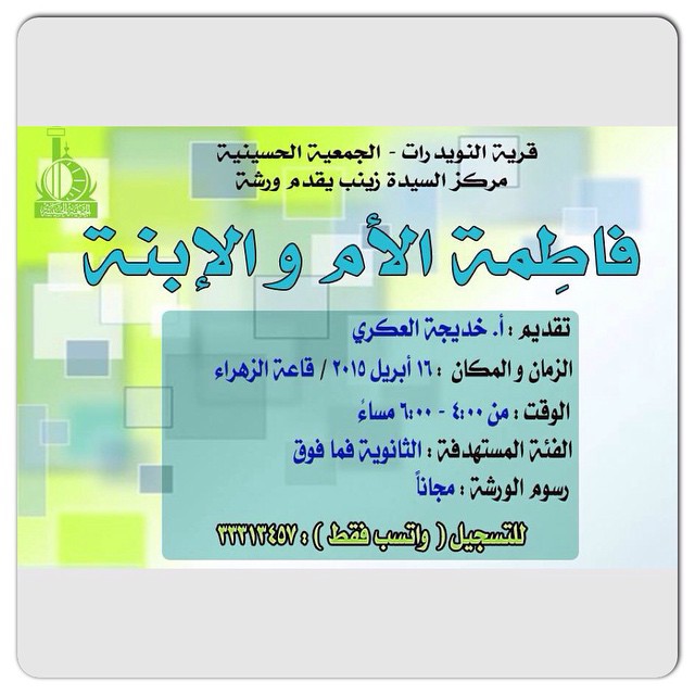 أعلان: ورشة فاطمة اﻷم و اﻹبنة