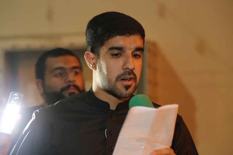 موكب اللطم المقدس قاده الرادود حسن أحمد العجوز، بإلقاءه قصيدةً تحدثت عن حال الصعب الذي عاشه شباب الأئمة في فترة توليه قيادة العالم الإسلامي.
