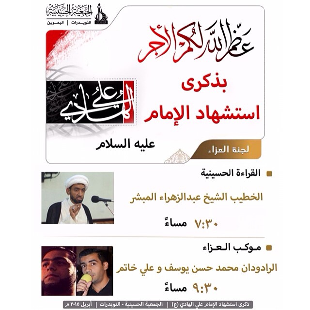 اعلان الجمعية الحسينية لذكرى استشهاد الامام الهادي ع 18 أبريل 2015 م إعلانات ملاحظة هامة : تحدد ليلة الاحياء بحسب رؤية هلال شهر رجب شارك معنا هذا الموضوع: انقر للمشاركة على WhatsApp (فتح في نافذة جديدة) WhatsApp النقر للمشاركة على X (فتح في نافذة جديدة) X انقر للمشاركة على Telegram (فتح في نافذة جديدة) Telegram انقر للمشاركة على فيسبوك (فتح في نافذة جديدة) فيس بوك النقر لإرسال رابط عبر البريد الإلكتروني إلى صديق (فتح في نافذة جديدة) البريد الإلكتروني اضغط للطباعة (فتح في نافذة جديدة) طباعة