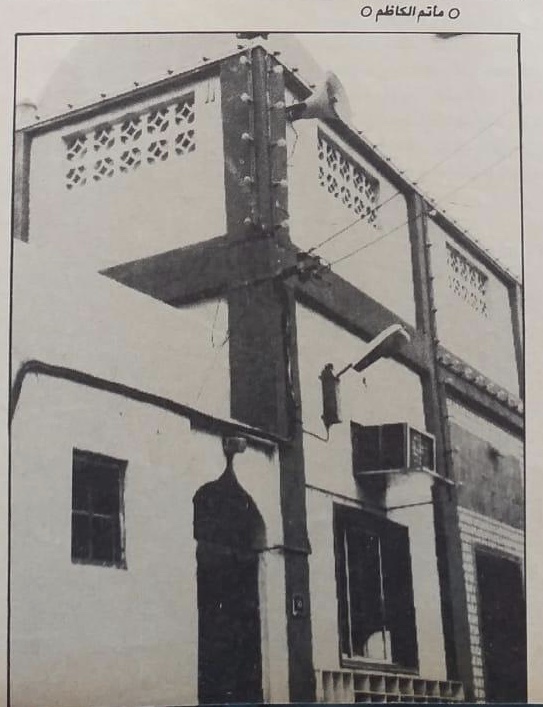 يتحدث الحاج علي محمد كاظم قائلا: حسب ما سمعته عن أبي أن جده يرحمه الله كانت له عوائد يقيمها في البيت والعائد عبارة عن اقامة مجالس حسينية في مجالس البيوت أو في المزارع والمساجد قبل تأسيس المأتم كمؤسسات حسينية مستقلة البناء، وهذه العوائد ترجع الي عام ١٨٨٤م على اثر ذلك قام الجد كاظم بعد وفاة أبيه وذلك عام ١٩٠٣م بتأسيس مأتم أو بالأحرى إقامة مجالس حسينية في محله الذى يصنع فيه المديد والذي تبلغ مساحته ٢٠ ذراعا في سبعة اذرع وفي هذا المحل كان جدي يعلم الصبيان القرآن الكريم والصلوات الخمس في سائر الأيام بالإضافة إلى صناعة المديد، وخلال أيام المياقيت (التحاريم) يقيمون فيه المجالس الحسينية، وكان البناء من طين والمسح من جص واستعمل في بنائه الحصى البحري، أما السقف فكان من جندل ومناكير وأما الرابط (البيم) أو ما يعرف باللنتر فكان من الجذوع.