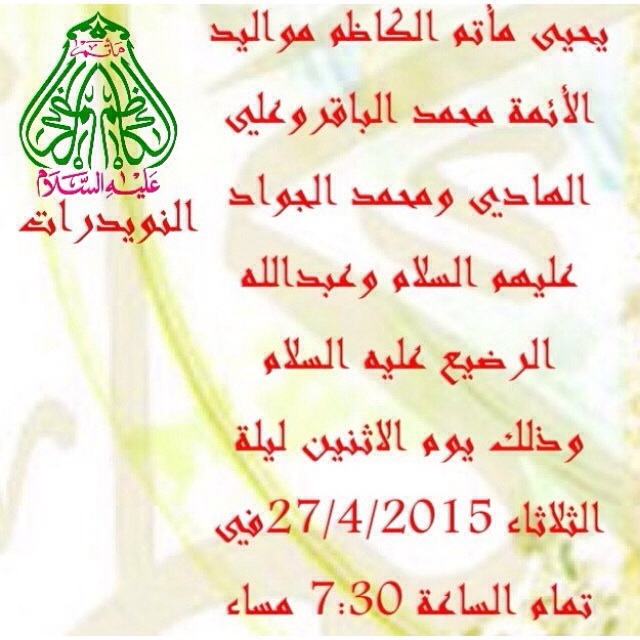 اعلان مأتم الكاظم لمولد الأئمة (الباقر، الهادي، الجواد) (ع) وعبد الله الرضيع