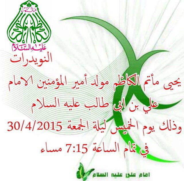 أعلان مأتم الكاظم لمولد الامام علي بن أبى طالب