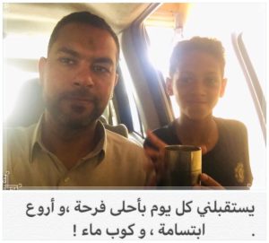 أي بُني… أشكرك بأن ساعدتني على تربية أخوتك ، فهذا أخوك الصغير يحذو حذوك و أراه ينتظرني ليستقبلني بكوب ماءٍ آخر !