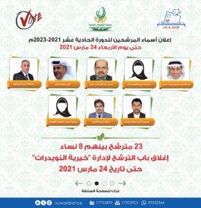أعلنت اللجنة العليا المشرفة على انتخابات جمعية النويدرات الخيرية للدورة الانتخابية القادمة (2021– 2023 ) غلق باب الترشح