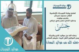 تهنئ بوابة النويدرات الشاب محمود سرحان بقدوم مولوده وحفيد الحاج حسن رضي درباس