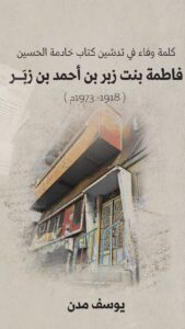 كلمة وفاء في تدشين كتاب خادمة الحسين فاطمة بنت زبر – بقلم الاستاذ يوسف مدن