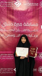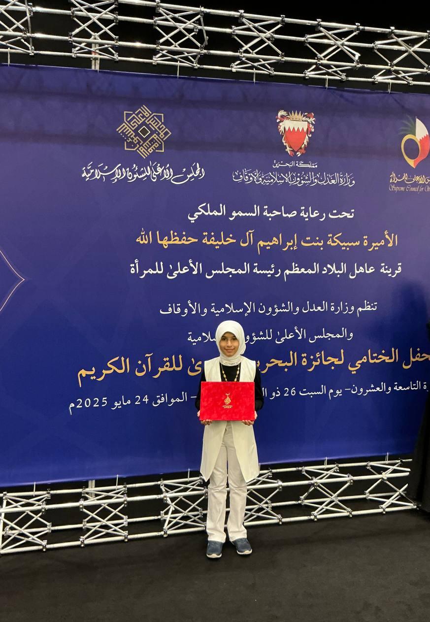 فقد حصدت عددًا من المراكز المتقدمة في مسابقات مختلفة على مستوى مملكة البحرين، كان أبرزها المركز الأول في مسابقة وزارة التربية والتعليم، والمركز الخامس في مسابقة الملك حمد الكبرى، والمركز الثاني في مسابقة الشيخ خليفة رئيس الوزراء، إضافة إلى المركز الأول في مسابقة الذكر الحكيم، إلى جانب مشاركات متعددة نالت فيها مراكز أولى متقدمة، ما يعكس تميزها في الحفظ والأداء والثقافة القرآنية.