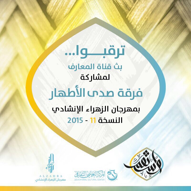 ترقبوا بث مشاركة فرقة صدى الأطهار الإنشادية