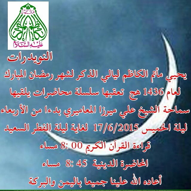 يحيي مأتم الكاظم ليالي الذكر لشهر رمضان المبارك لعام 1436 هـ