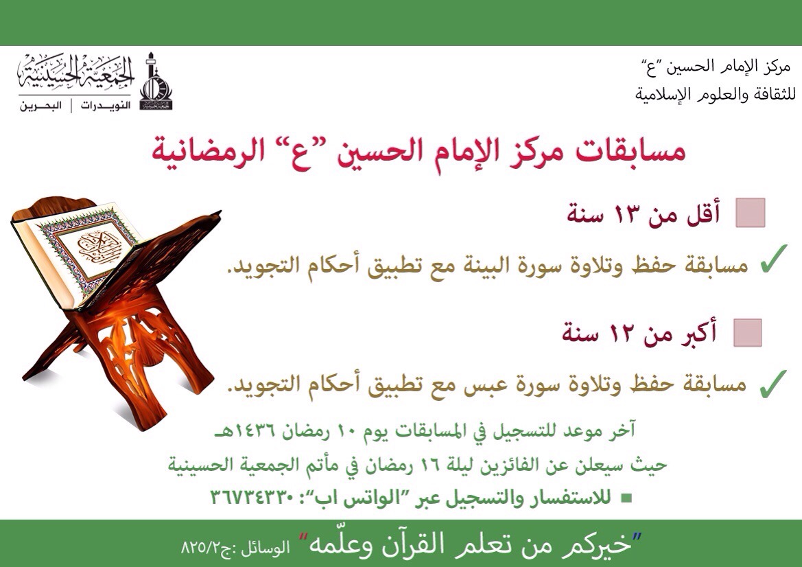 مسابقات مركز الإمام الحسين “ع” للثقافة والعلوم الإسلامية