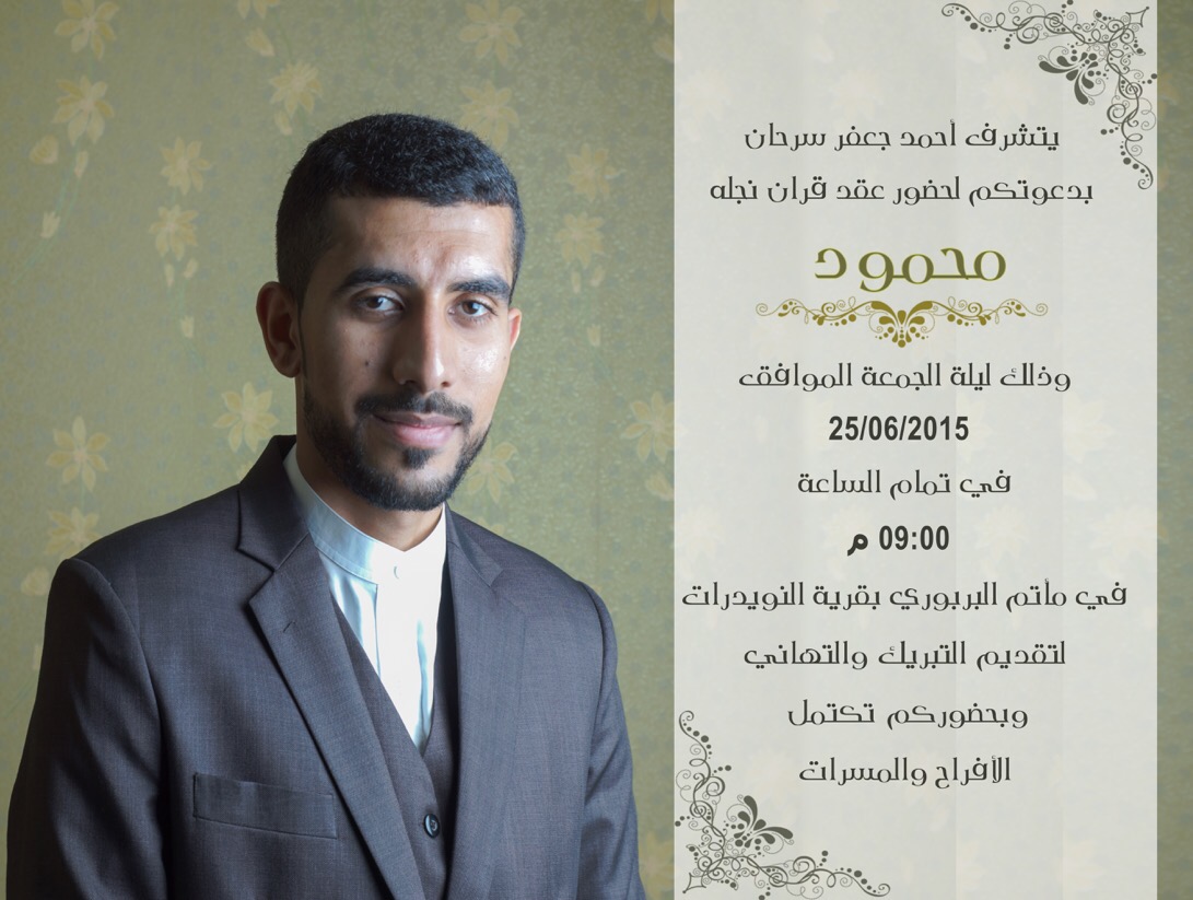 بدعوتكم لحضور عقد قران نجله