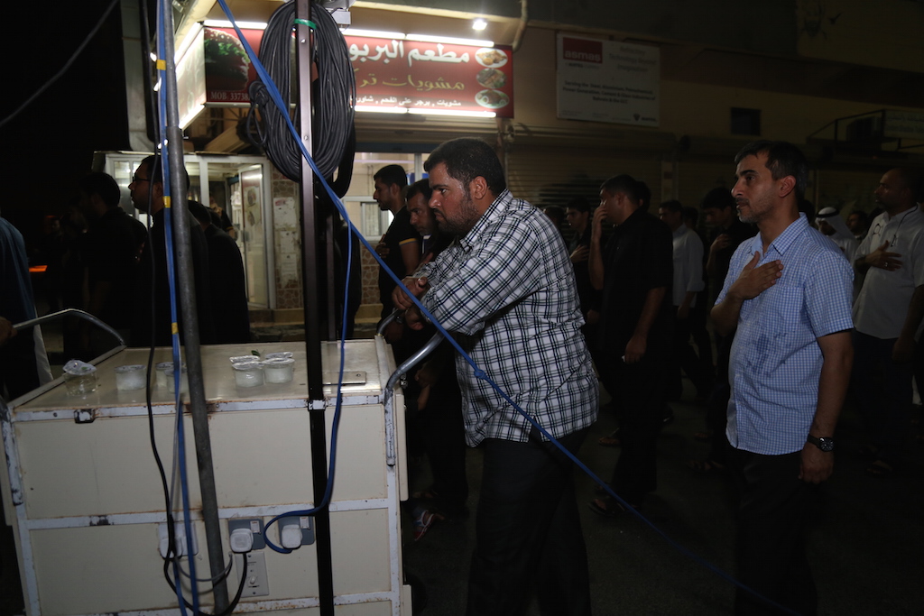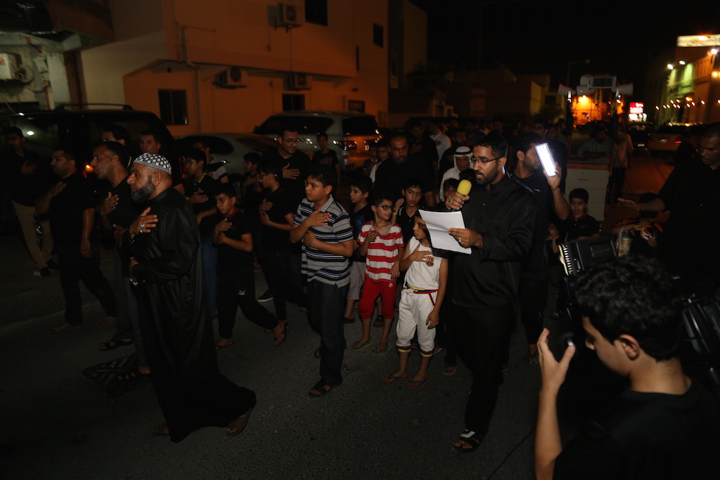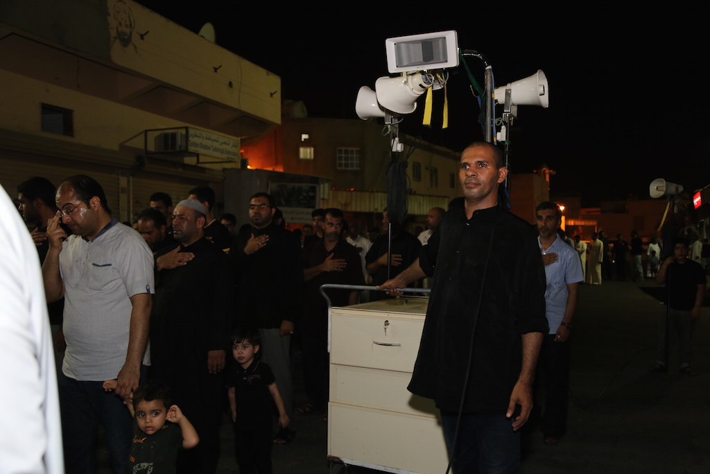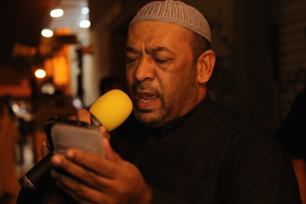 موكب العزاء انطلق من أمام بوابة الجمعية الحسينية بالقرية بقيادة الرادود “حسن قمبر” الذي أشعلت قصيدته القلوب حزناً وألماً على استشهاد حفيد رسول الله الإمام الصادق عميد المذهب الجعفري.