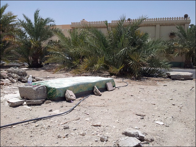 ويضيف أن التلة كان يظهر من بين اجزائها بعض آثار البناء التي تدل على وجود جدار مبني بالحجارة والطين لكنه بعد سنوات اختفى هذا الجدار الذي يعود لبناء مسجد قديم كان يحيط بالقبر.