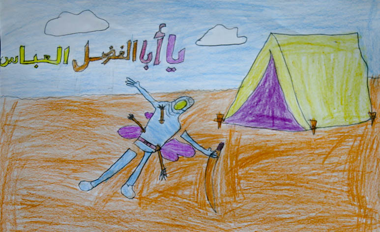 بعض اللوحات المشاركة في المرسم الحسيني ١١ والتي شارك بها ابناء القرية