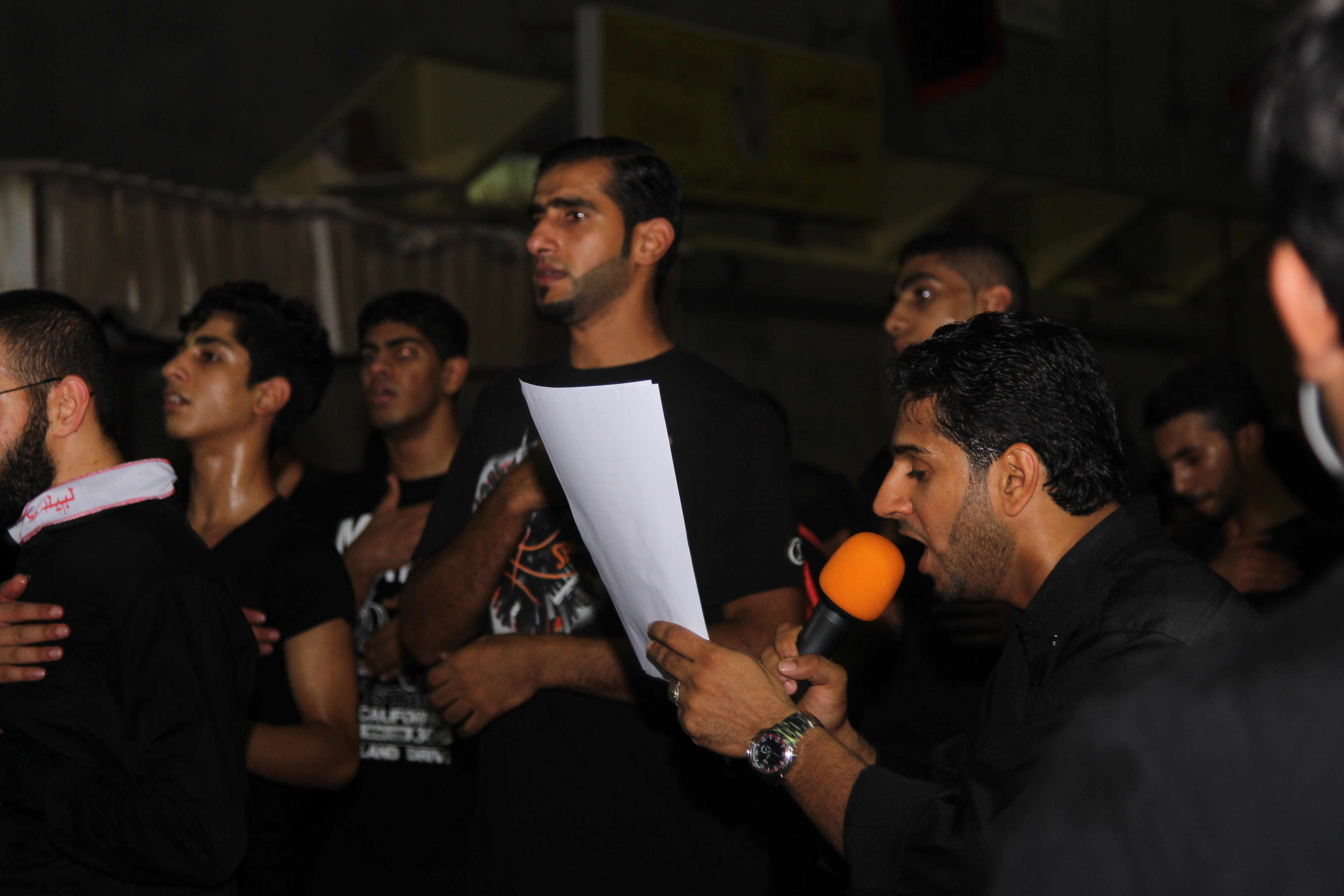 في المساء ليلة السادس من المحرم انطلق موكب العزاء الحسيني بقيادة الرادود ”جعفر قمبر“ الذي ملأت قصيدته الحزن والألم لمصاب الإمام أبي عبدالله الحسين (عليه السلام) وأصحابه الأخيار الذين بذلوا أرواحهم ومهجهم دون الحسين.