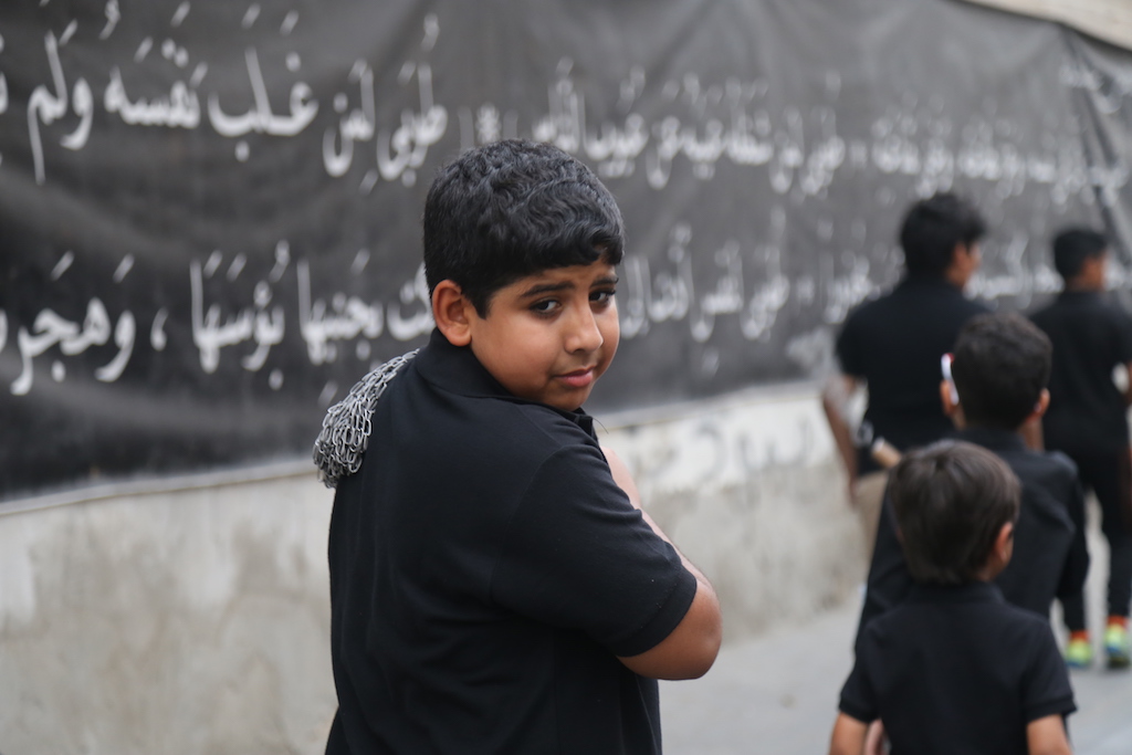 الموكب العزائي استعرض مصيبة القاسم إبن الإمام الحسن المجتبى (عليهما السلام) وكيف انه بذل نفسه الزكية دفاعاً عن إمام زمانه أبي عبدالله الحسين.