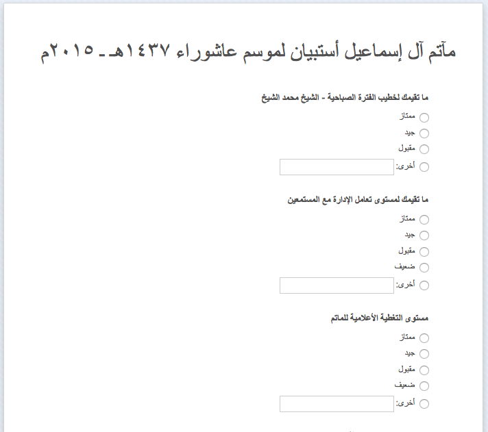 و بهذه المناسبة تتقدم إدارة المأتم باستبيان لتقييم أوجه النقص و تطويرها.