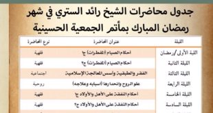 جدول محاضرات الشيخ رائد الستري في شهر رمضان المبارك المكان : مأتم الجمعية الحسينية الوقت : ١٠:١٥ مساءً
