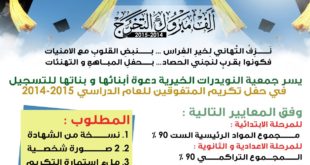 أكمل القراءة »اعلان حفل تكريم المتفوقين للعام الدراسي 2014 – 2015 م