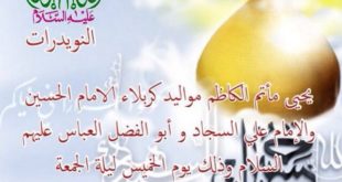 يحيى مأتم الكاظم مولد أبطال كربلاء الامام الحسين والإمام علي السجاد و أبو الفضل العباس عليهم السلام وذلك يوم الخميس ليلة الجمعة الموافق 21/5/2015 م في تمام الساعة 7:30 مساء