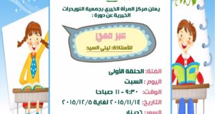 يعلن مركز المرأة الخيري بجمعية النويدرات الخيرية عن دورة ( عبر معي ) للأستاذة ليلى السيد الحلقة الأولى يوم السبت الوقت من 9:30 – 11:00 صباحًا تبدأ الدورة بتاريخ 14 / 11 / 2015 م ولغاية تاريخ 13 / 12 / 2015 م السعر 5 دينار للتسجيل 35040629