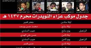 أكمل القراءة »جدول موكب عزاء النويدرات محرم ١٤٣٧ هج / ٢٠١٥م
