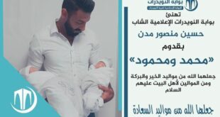 تهنئ بوابة النويدرات الشاب حسين منصور مدن بقدوم “محمد ومحمود” جعلهم الله من مواليد الخير والبركة ومن الموالين لأهل البيت