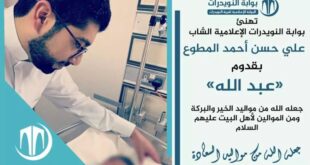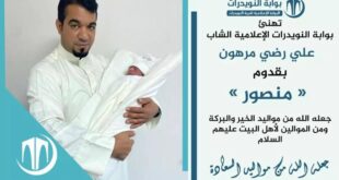 تهنئ بوابة النويدرات الشاب علي رضي مرهون بقدوم مولوده “منصور” جعله الله من مواليد الخير والبركة ومن الموالين لأهل البيت