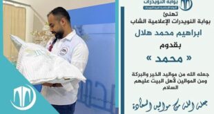 تهنئ بوابة النويدرات الشاب إبراهيم محمد هلال بقدوم مولوده “محمد” جعله الله من مواليد الخير والبركة ومن الموالين لأهل البيت