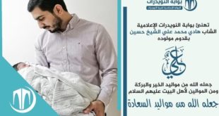 تهنئ بوابة النويدرات الشاب نجيب محمد ناصر بقدوم مولوده “حسين” جعله الله من مواليد الخير والبركة ومن الموالين لأهل البيت