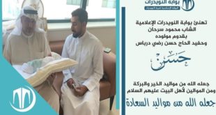 تهنئ بوابة النويدرات الشاب محمود سرحان بقدوم مولوده وحفيد الحاج حسن رضي درباس “حسن” جعله الله من مواليد الخير والبركة ومن الموالين لأهل البيت