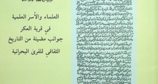 أسرة الربعي البربورية البحرانية وتجربتها التعليمية التربوية في بلدة شاهجهان دراسة تاريخية بفلم الاستاذ يوسف مدن اكتسب باحث هذه الدراسة التاريخية التربوية خلال أكثر من اثني عشر عاًمـا خبرة معرفية تراكمية بموضوع بحثه عن جوانب من التاريخ الثقافي لبلدة (بربورة) البحرانية، وتعرف تدريجيا على أفكار ومعلومات أكثر، وقد استبطنت …