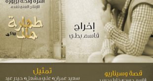 اسرة واحة بربورة وتحت رعاية جمعية النويدرات الخيرية تقدمان ( طهارة مال ) سيناريو وحوار قاسم عبدالله خليل حبيب بطولة محمد بطي تمثيل علي مشعل حيدر عيد لؤي عمران حسن هلال بمشاركة (سعيد عمران) اخراج قاسم بطي