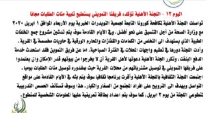 اليوم ١٢ – اللجنة الأهلية تؤكد: فريقنا التمويني يستطيع تلبية مئات الطلبات مجانا تواصلت اللجنة الأهلية لمكافحة كورونا التابعة لجمعية النويدرات الخيرية يوم الأربعاء الموافق ١ ابريل ٢٠٢٠ مع وزارة الصحة من أجل التنسيق على نحو أفضل، وفي الأيام القادمة سوف يتم تدشين مشروع جمع المخلفات الطبية الذي يستهدف …