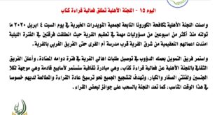 اليوم ١٥ – اللجنة الأهلية تطلق فعالية قراءة كتاب واصلت اللجنة الأهلية لمكافحة الكورونا التابعة لجمعية النويدرات الخيرية في يوم السبت ٤ ابريل ٢٠٢٠ ما تولته منذ أكثر من اسبوعين من مسؤوليات مهمة في تعقيم القرية حيث انطلقت فرقتين في الفترة الليلية امتدت اعمالهم التعقيمية من شرق القرية …