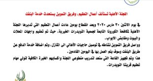اللجنة الأهلية تدرب المتطوعين وفريق التموين جاهز للعمل واصلت اللجنة الأهلية لمكافحة كورونا التابعة لجمعية النويدرات الخيرية دورها في اعمال التعقيم المعتادة يوم الخميس ٢٦ مارس ٢٠٢٠، في فترتي الصباح والليل وغطت مناطق كثيرة من القرية. وتم تدشين حصص تدريبية للمتطوعين لتعلم ارشادات الامن والسلامة الشخصية ، وكيفية استخدام المعدات …